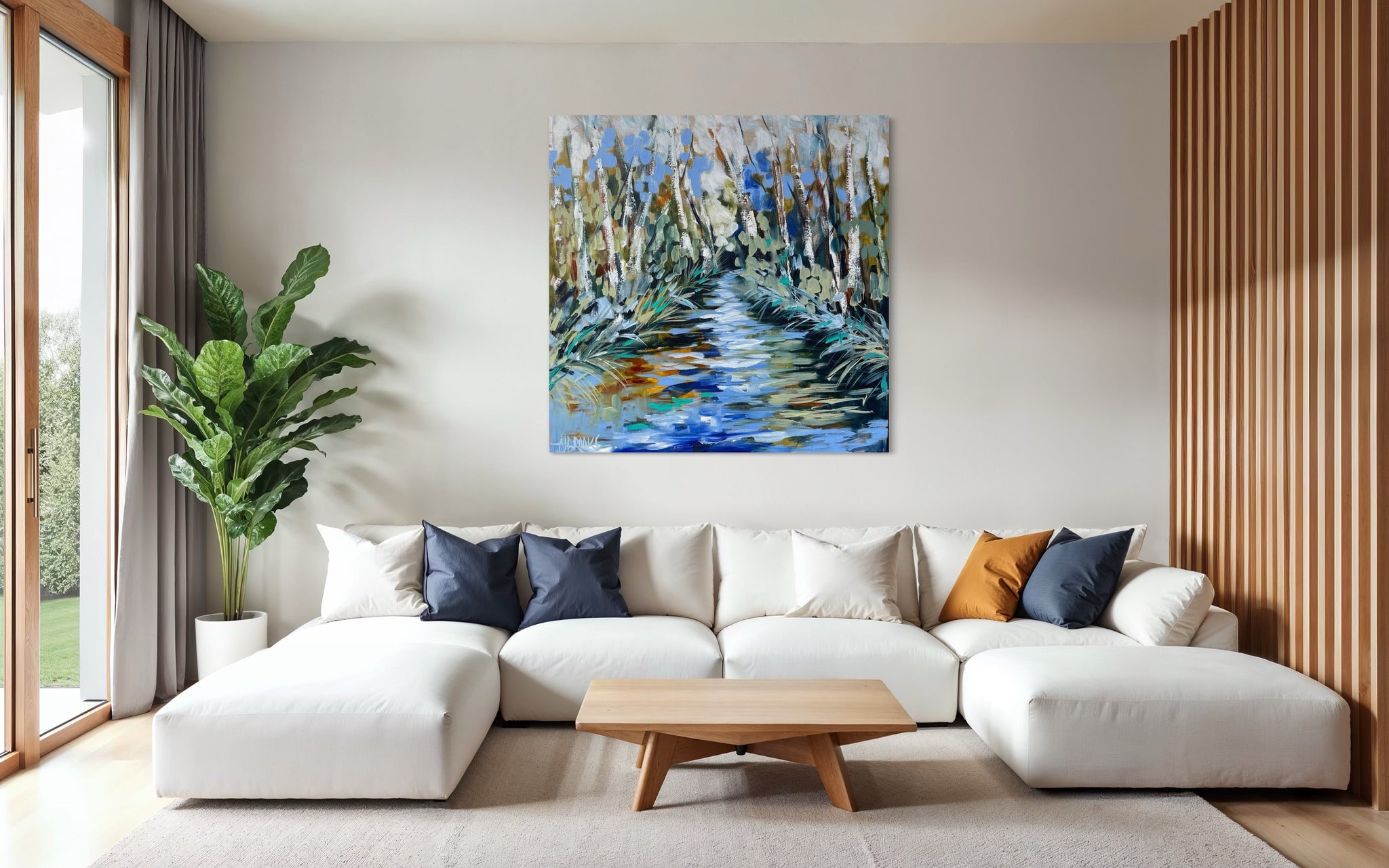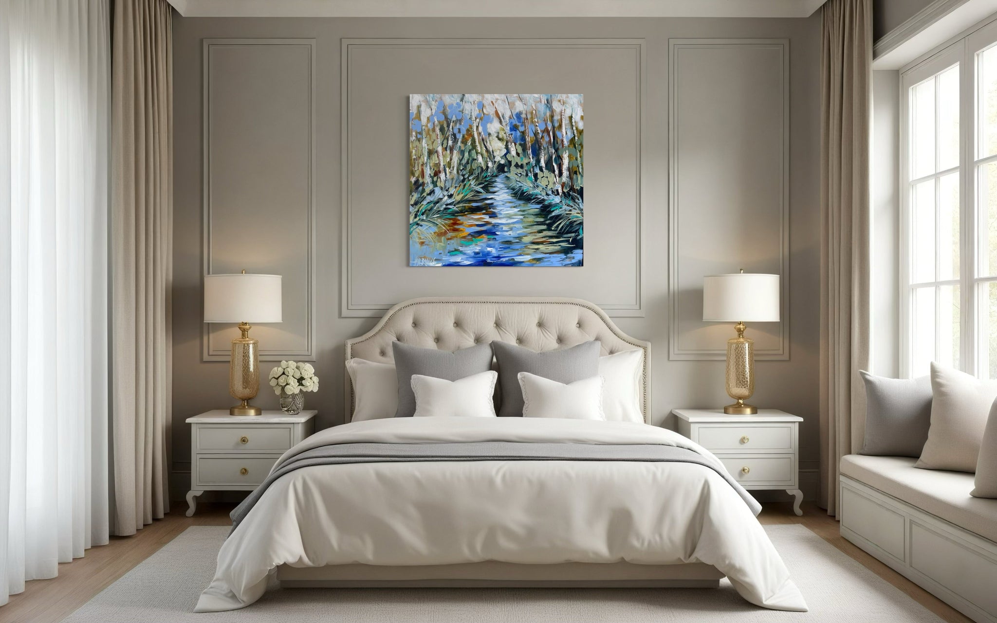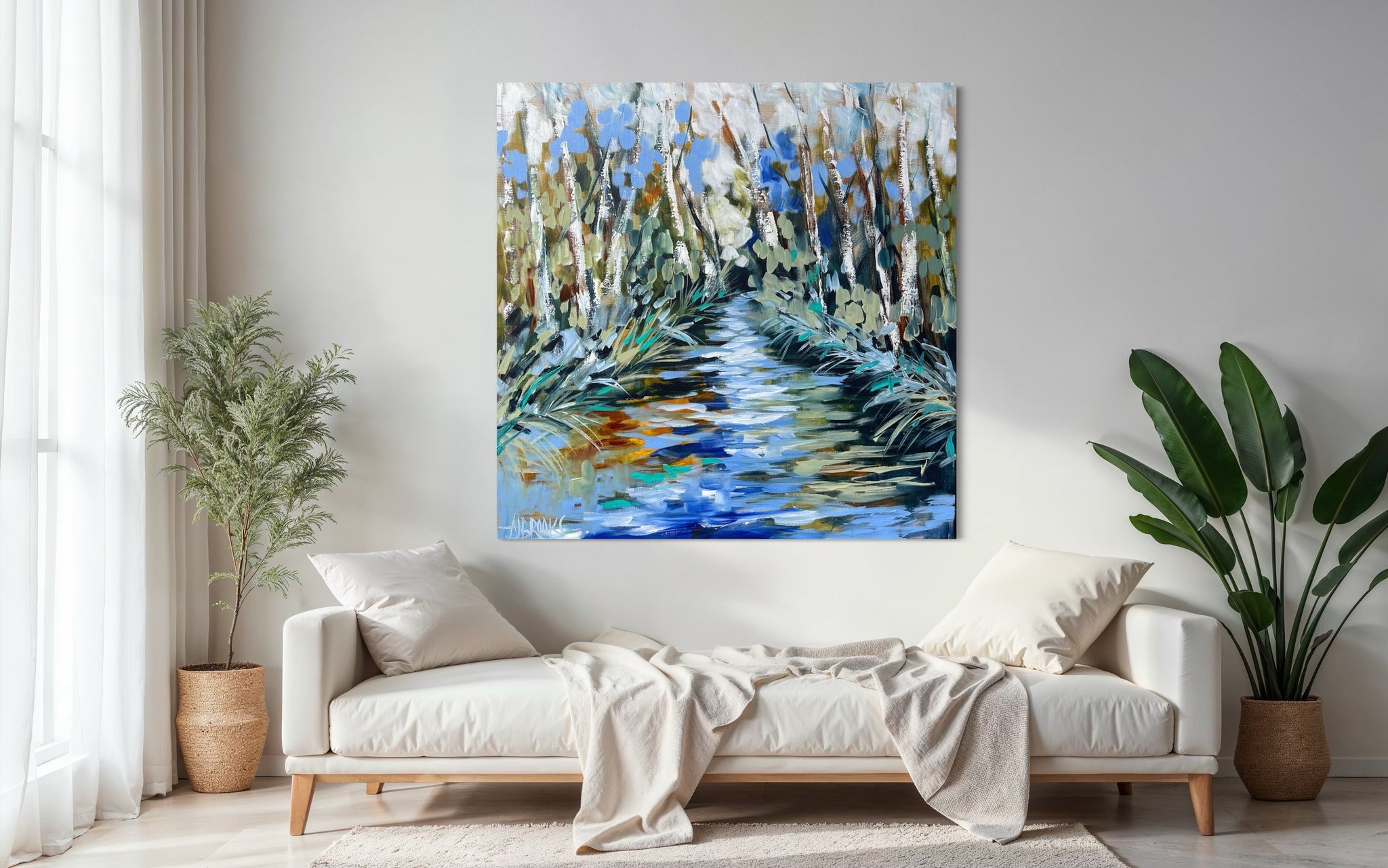 Tranquil reflections -original on Belgian linen - 90x90 Cm