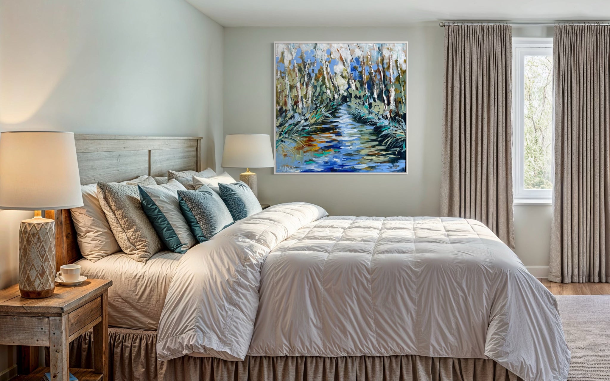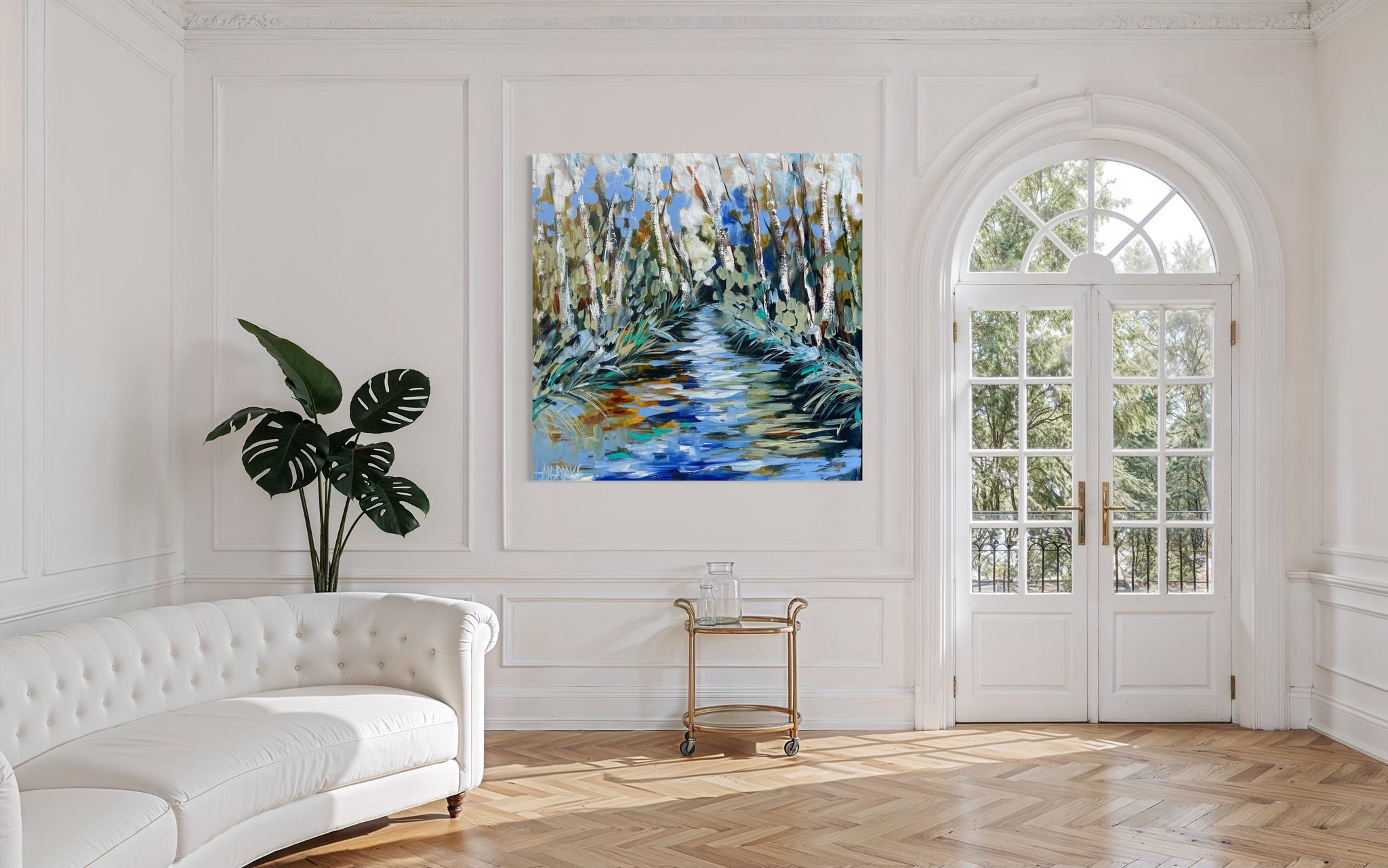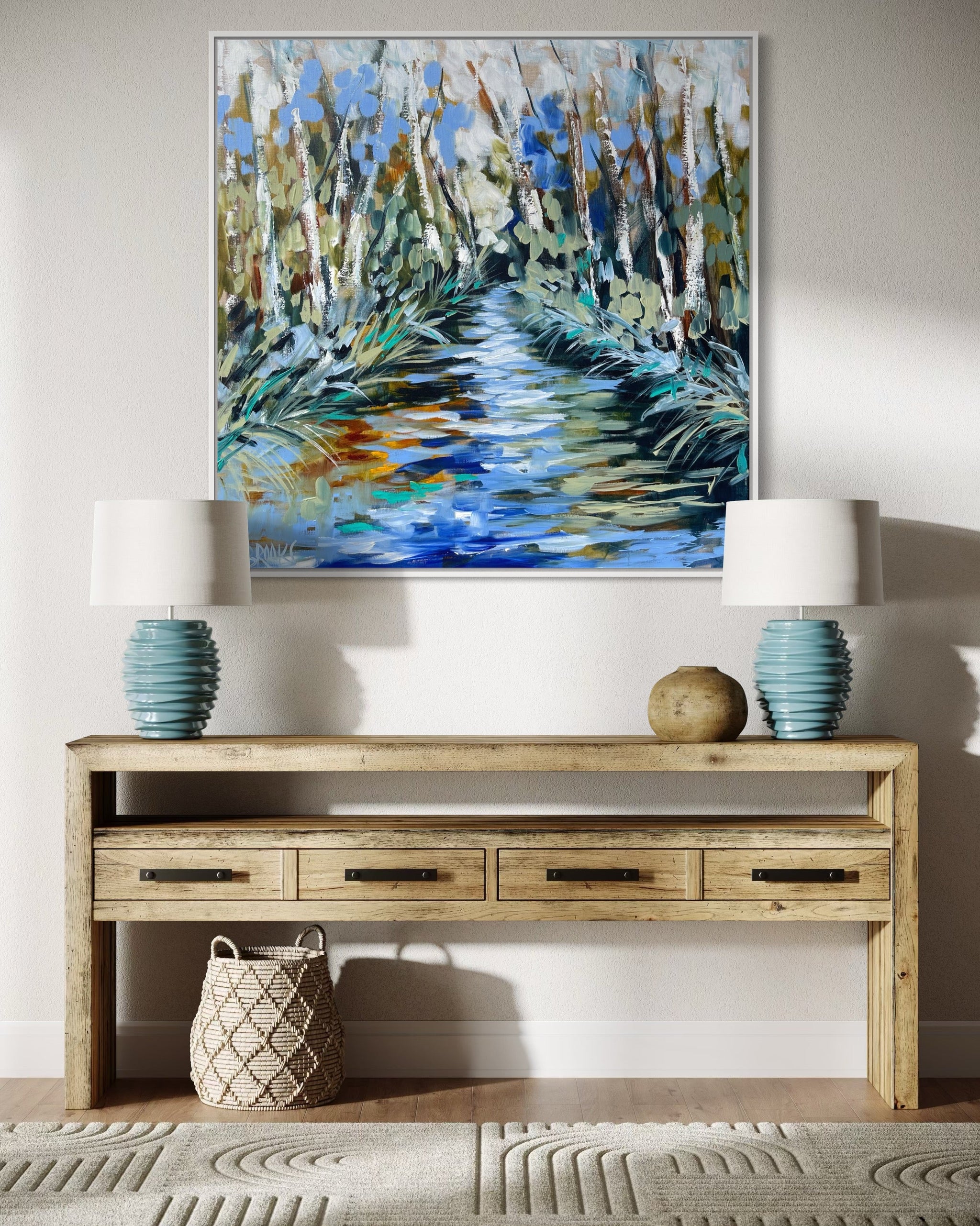 Tranquil reflections -original on Belgian linen - 90x90 Cm