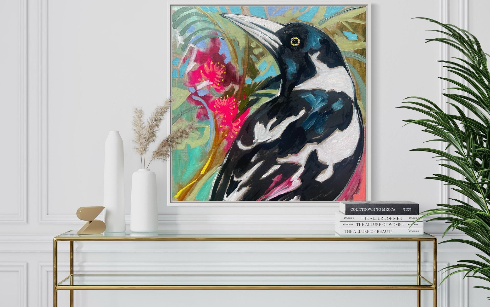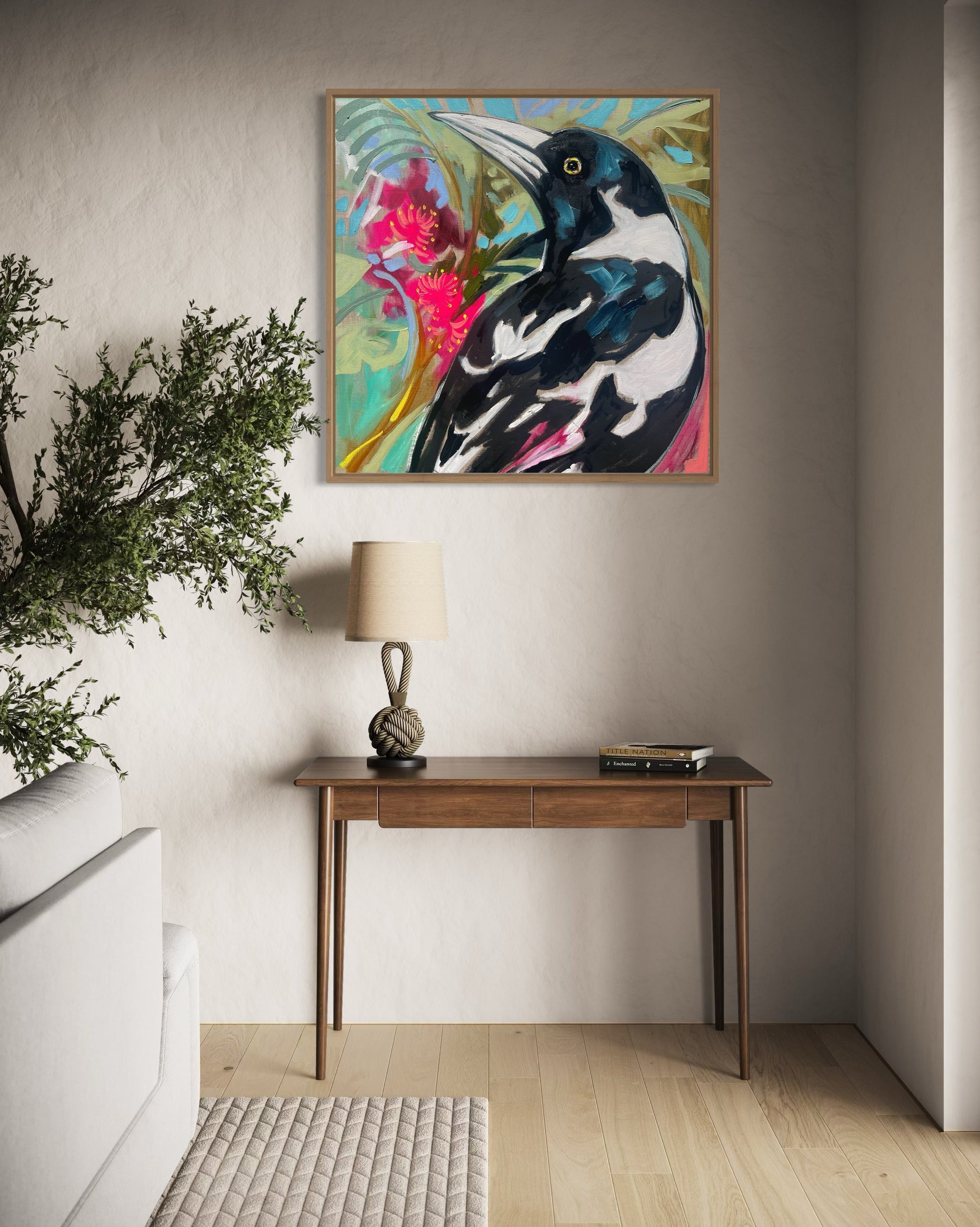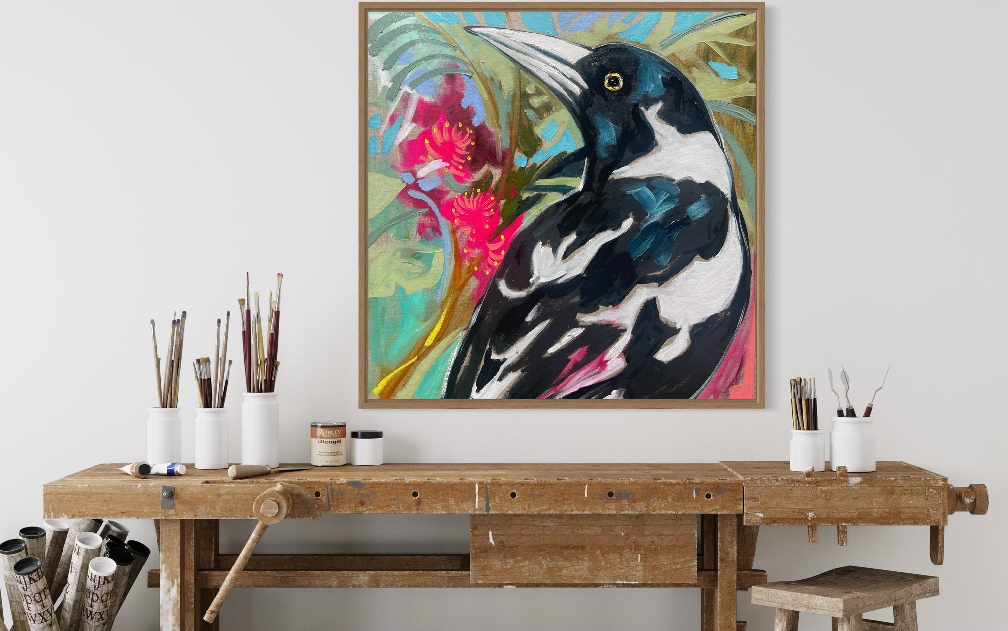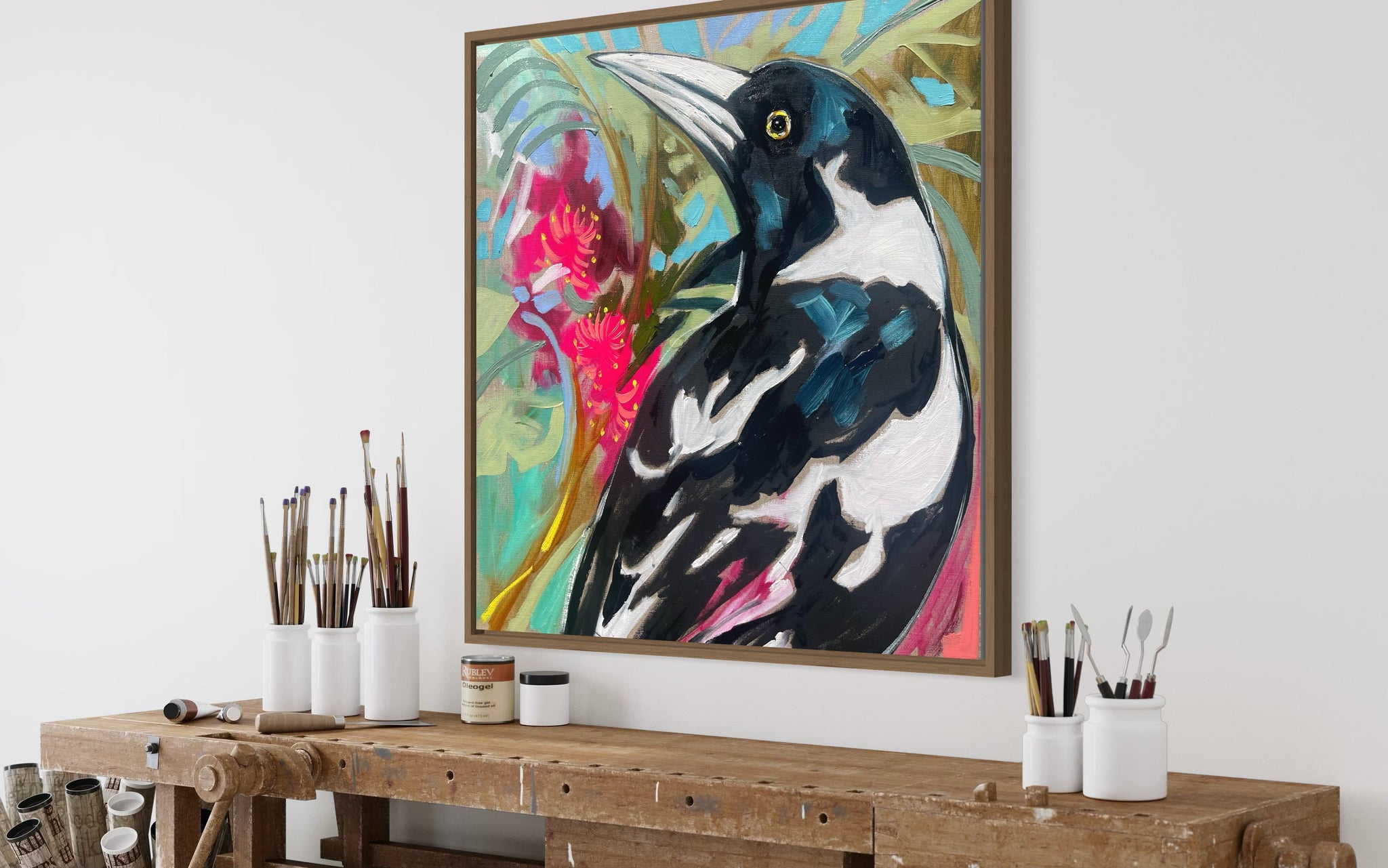Tropical magpie - 60x60 cm - original on Belgian linen