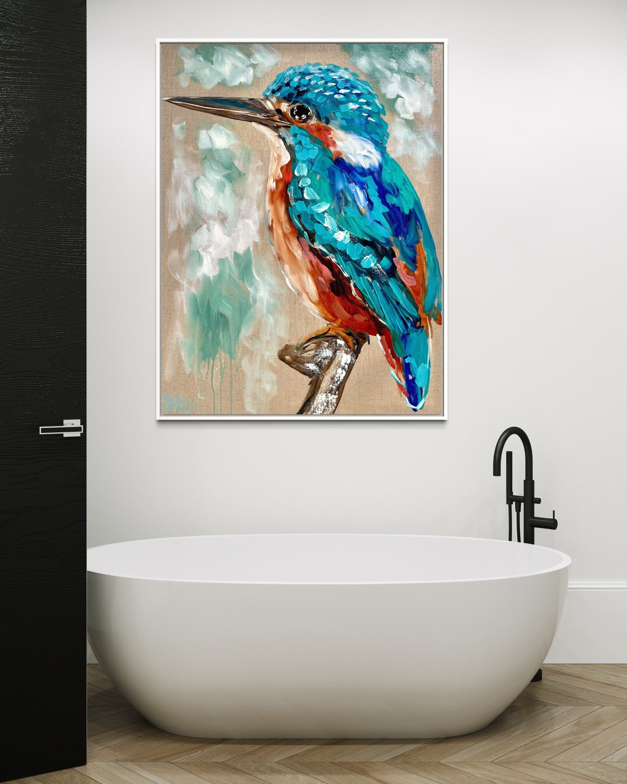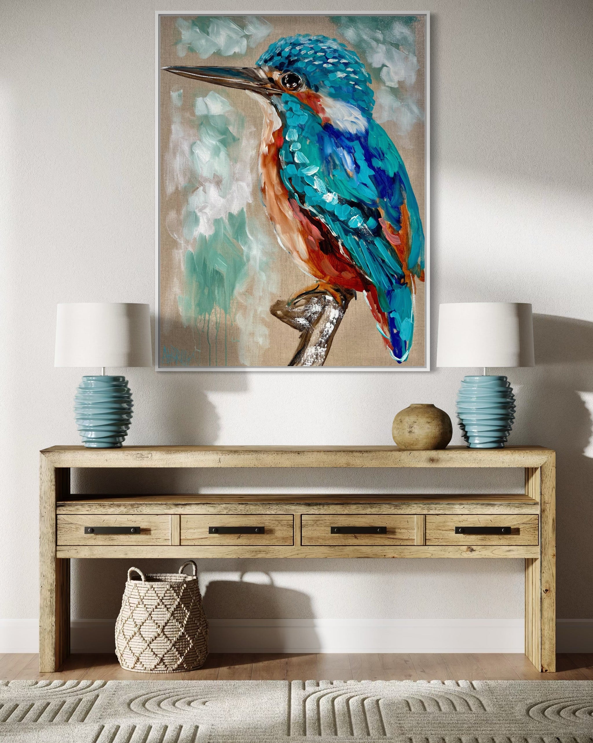 Azure Kingfisher-original on Belgian linen 75x100 Cm