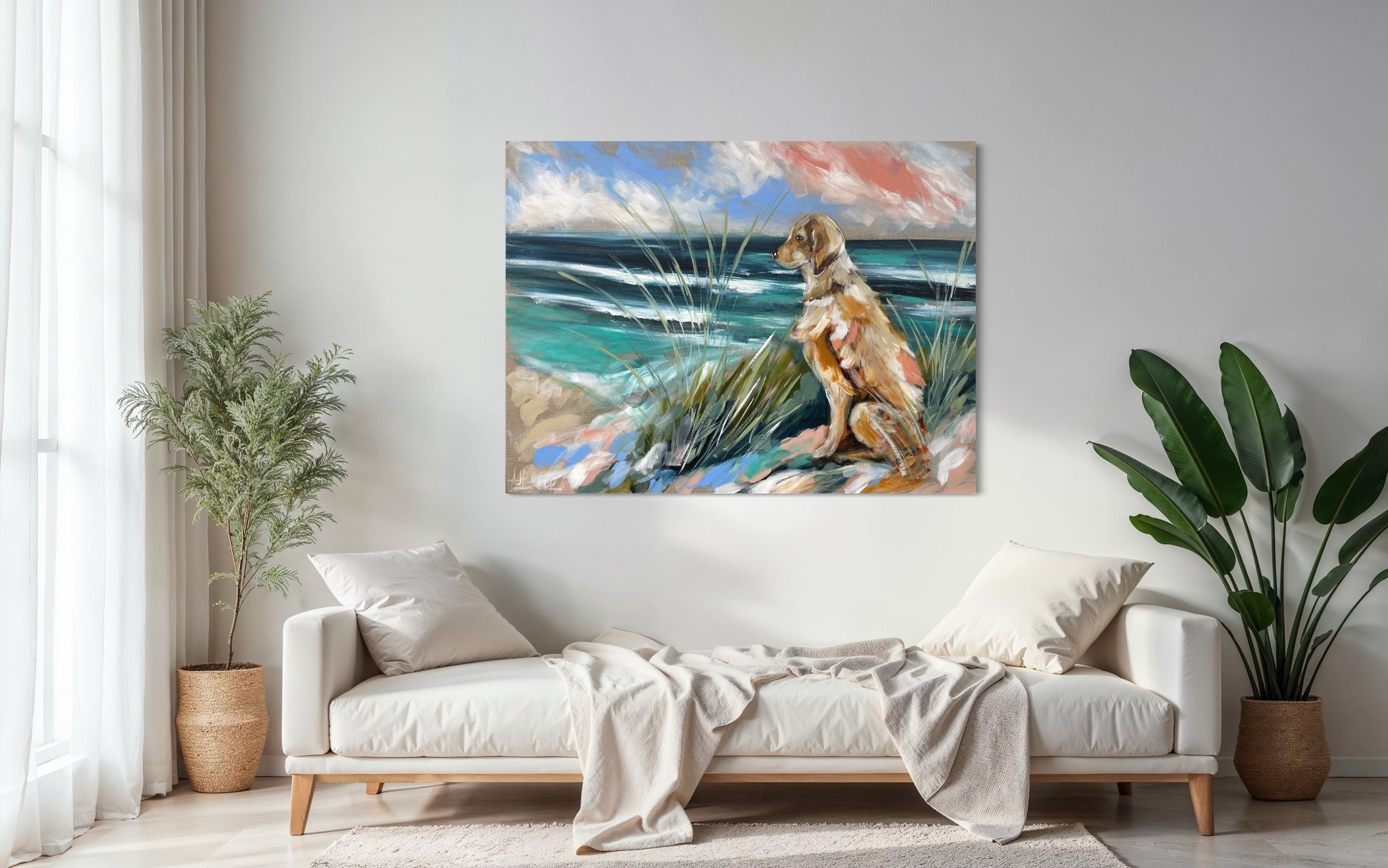 Our favorite place - original on Belgian linen 75x100 cm
