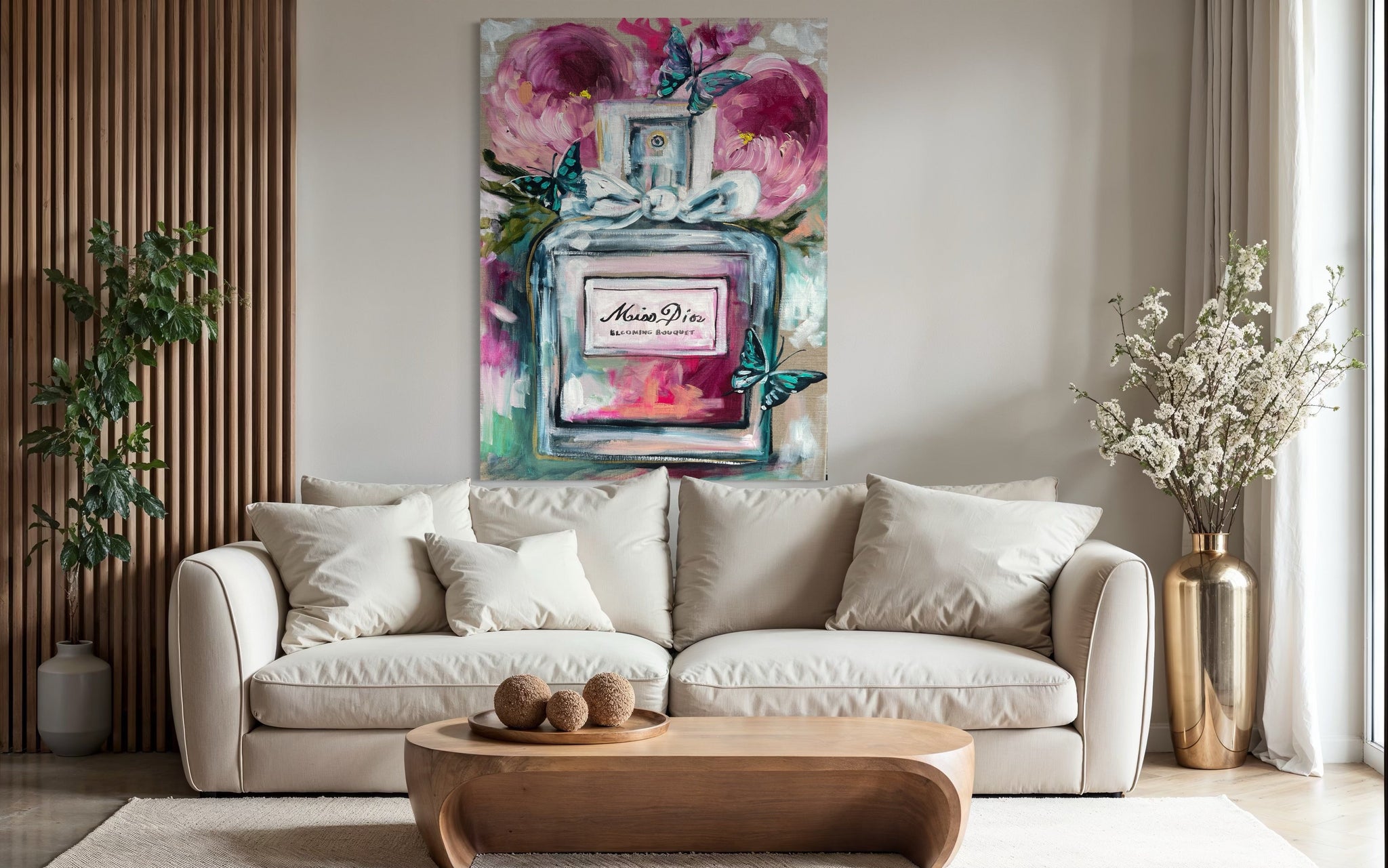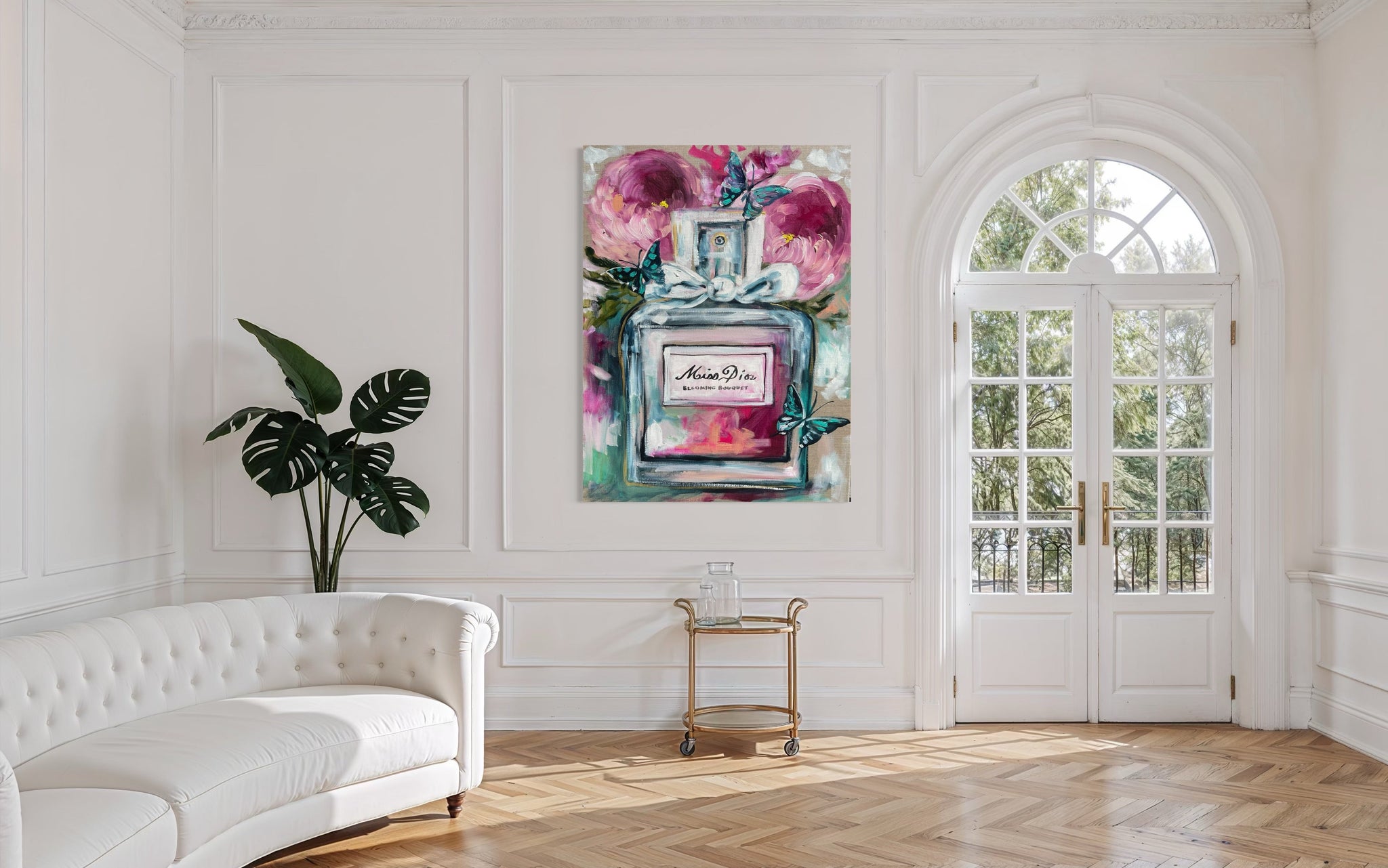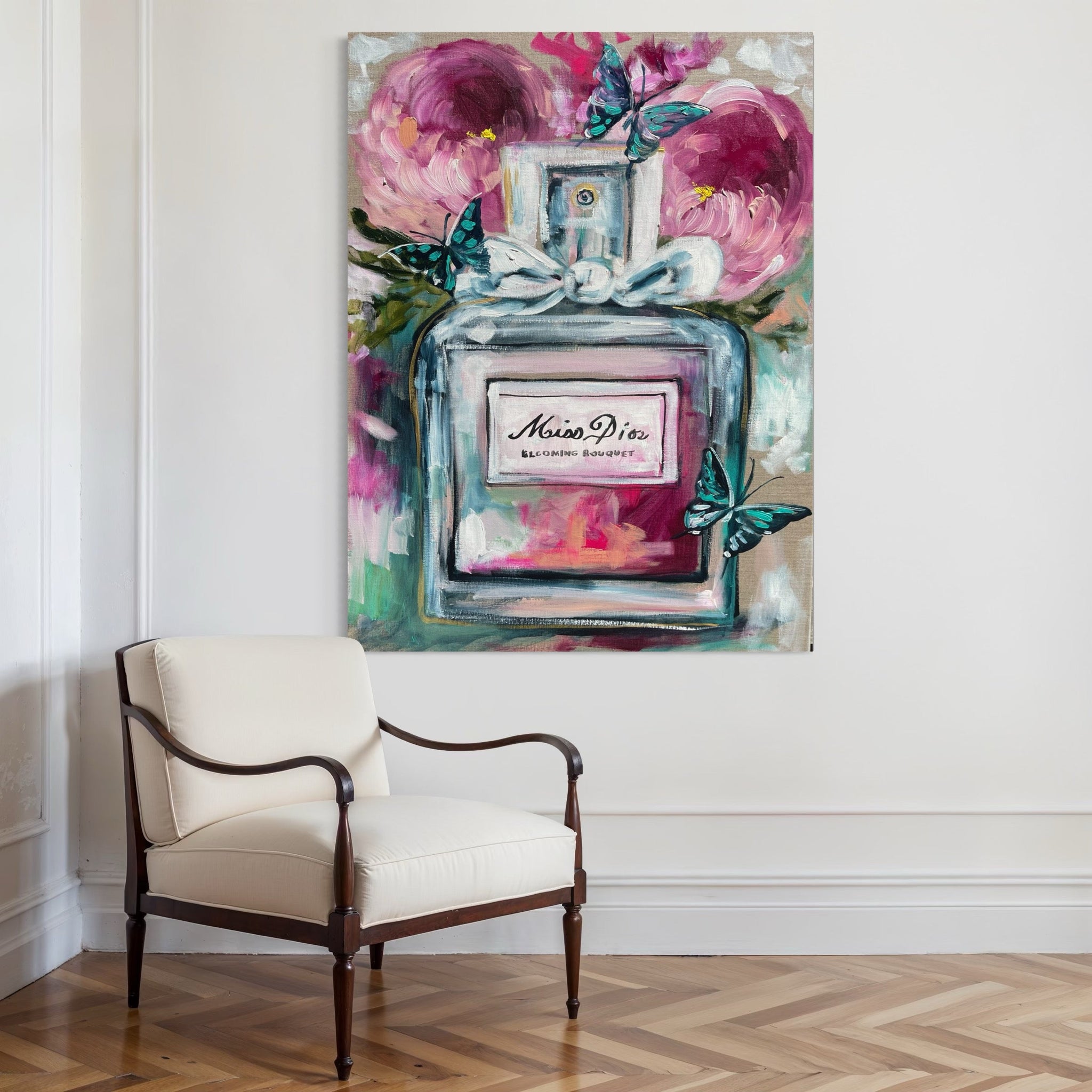 Miss Dior - Blooming bouquet -Original on Belgian linen 90x120 cm