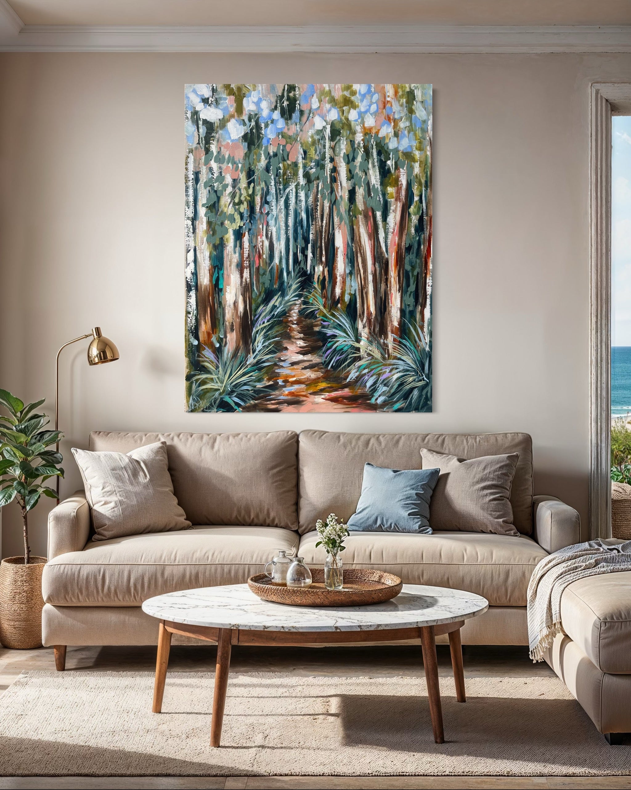 Australian bush walk -Original on Belgian linen 90x120 Cm